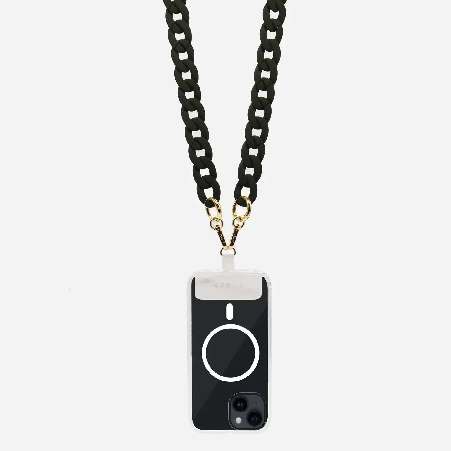 Plaats de kleine kaart in het hoesje en daarna plaats je je telefoon weer in het hoesje en klik dan de karabijnhaak eraan.