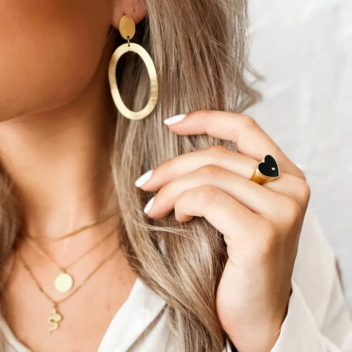 Statement matte oorbel met grote ovale ring in goud en zilver.