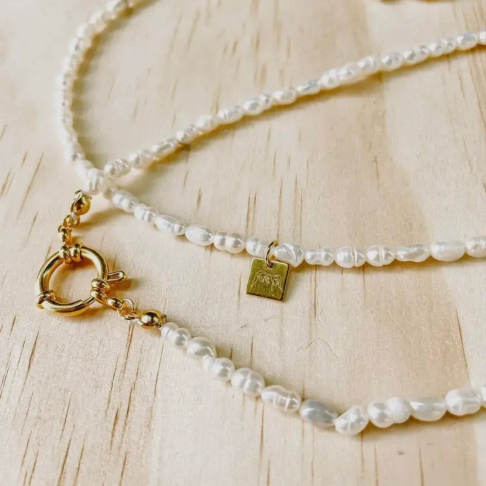 Halsketting Choker met witte zoetwaterparels met sluiting van roestvrij staal.