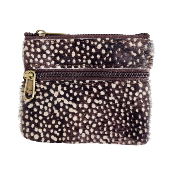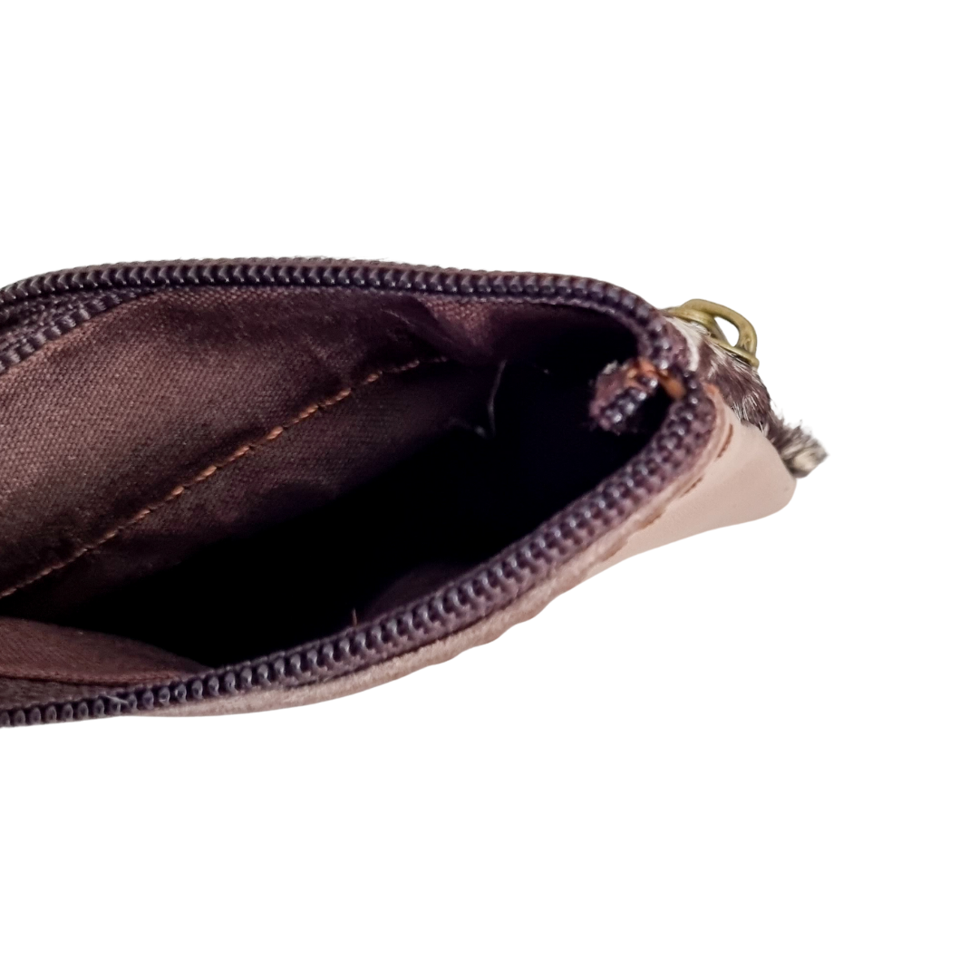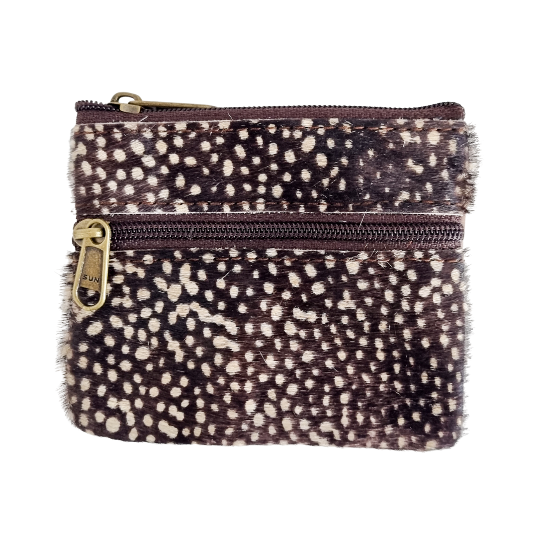 Leren tijgerprint portemonneetje met twee vakjes met rits.