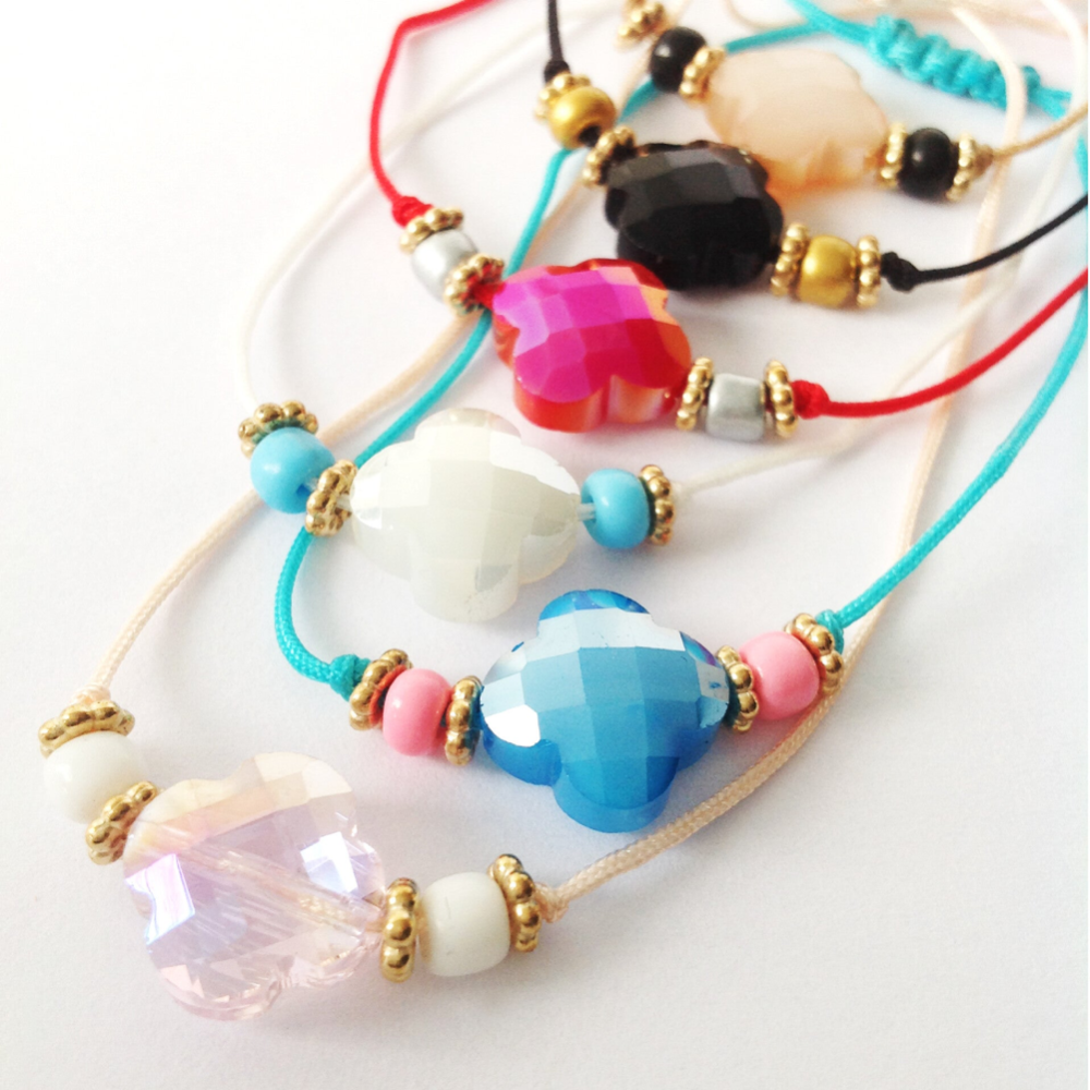 Inhoud: Verstelbaar armbandje met geluksklavertje