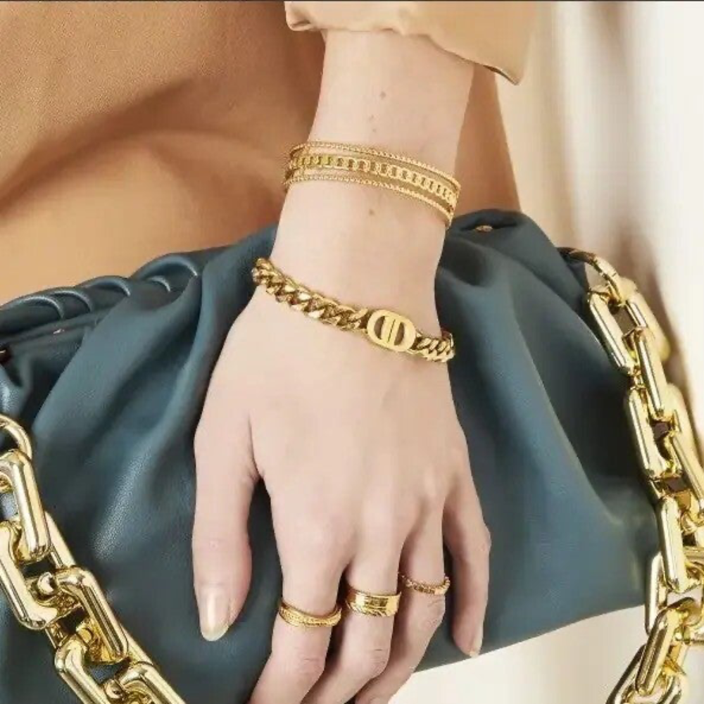 Chunky gouden stainless steel met een The Good Life logo. Kleur: Goud